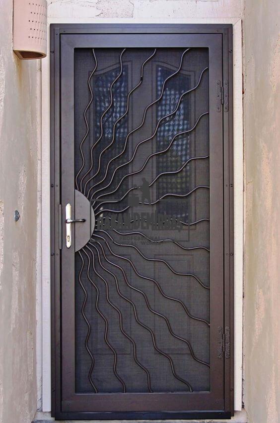 Ferforje Kapı Korumalığı, güneş dalgası desenli dış ferforje kapı korumalığı modeli