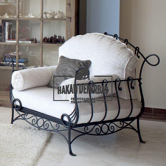 Ferforje tekerlekli koltuk modeli, kumaş, ahşap ve demir’in birleşimi ile modern, estetik klas bir üründür.