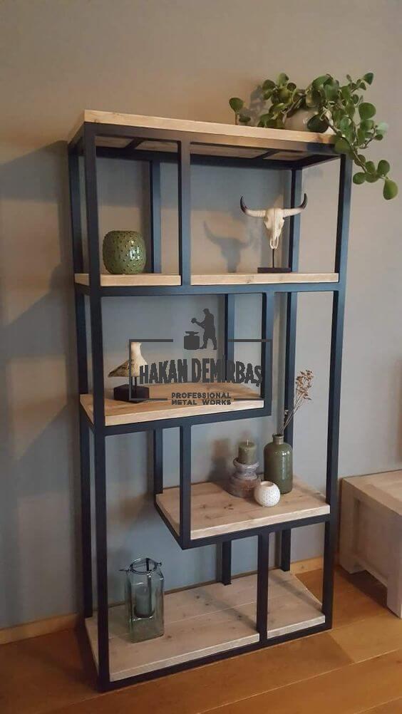 Ahşap ferforje raf modeli, salonunuzda mutfağınızda kileriniz de kafenizde ve iş yerinizde kullanabileceğiniz şık modern raf modeli örneğidir.