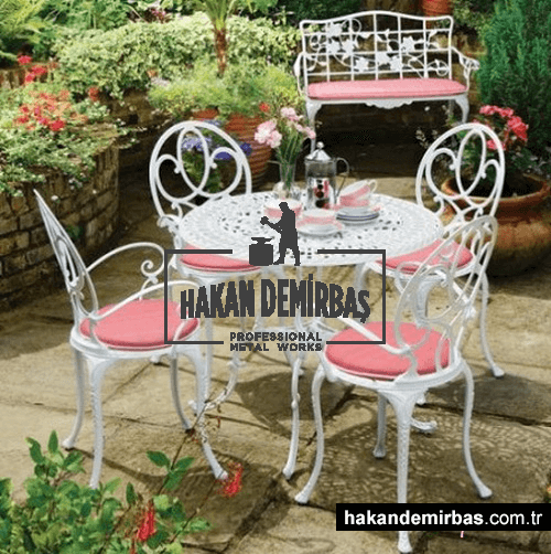 Bahçe içi ferforje masa modellerine örnektir. Yazlık evlerinizde veya ofislerinizde bahçenizin içinde küçük şirin ve estetik bir görüntü ile herkesi büyüleyebilirsiniz. | izmir ferforje Hakan Demirbaş