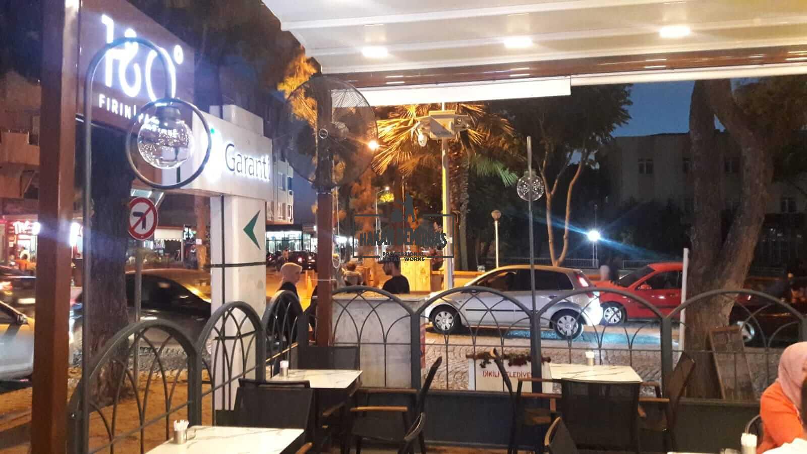Cafe’nin ferforje aksesuarlarını ve eşyalarını tasarlayıp yaptık. Sonra işyeri sahibinin beğenisi ve arzusu üzerine akşamları aydınlatma amaçlı ferforje lambader ürünlerini de kendi el işçiliğimiz ile tasarlayıp monte ettik.
